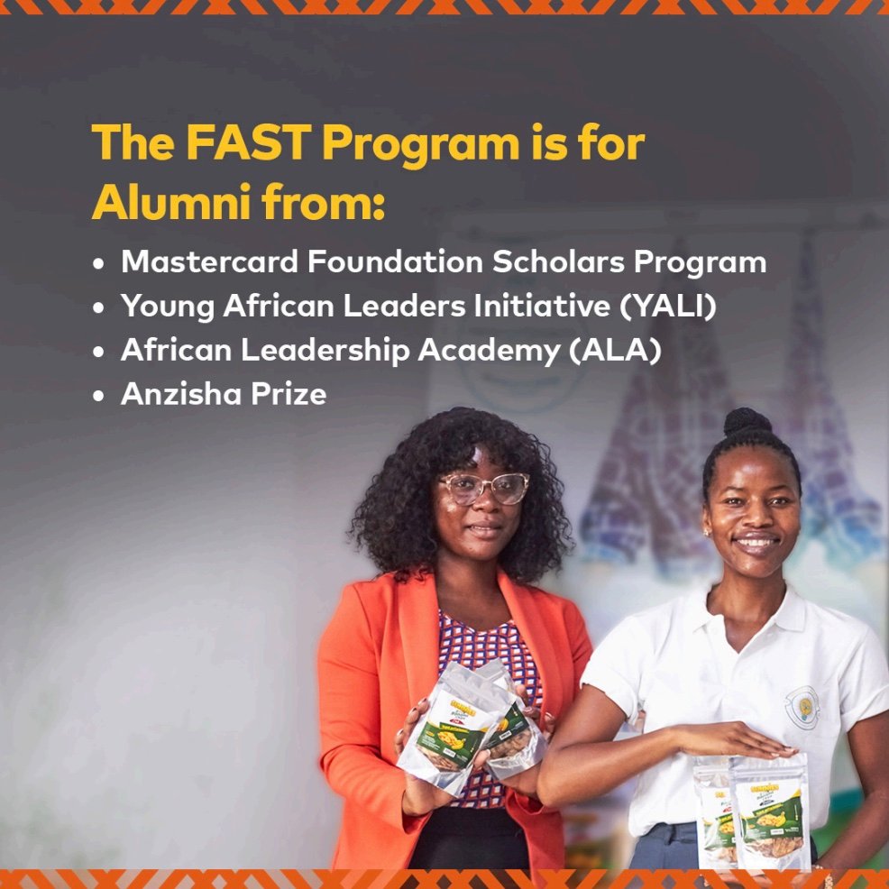 If you’re an aspiring entrepreneur, the Mastercard Foundation Fund for Alumni Start-ups in Transition Program (FAST) can provide funding and access to business development training to support your venture.